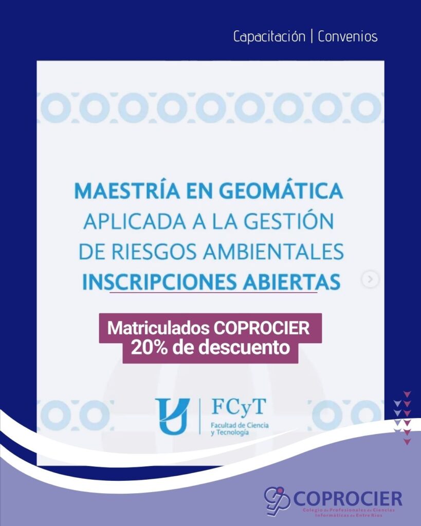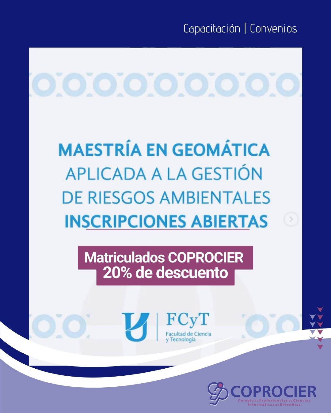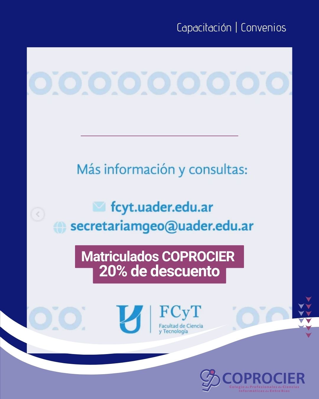 Se trata de una carrera arancelada. Por gestiones institucionales realizadas por nuestro Colegio, los matriculados de COPROCIER podrán acceder a esta carrera de posgrado con un 20% de descuento sobre el arancel.