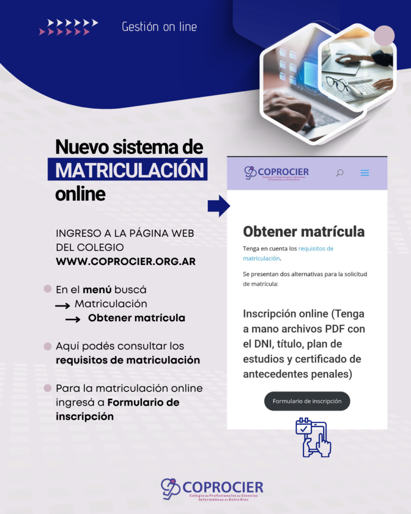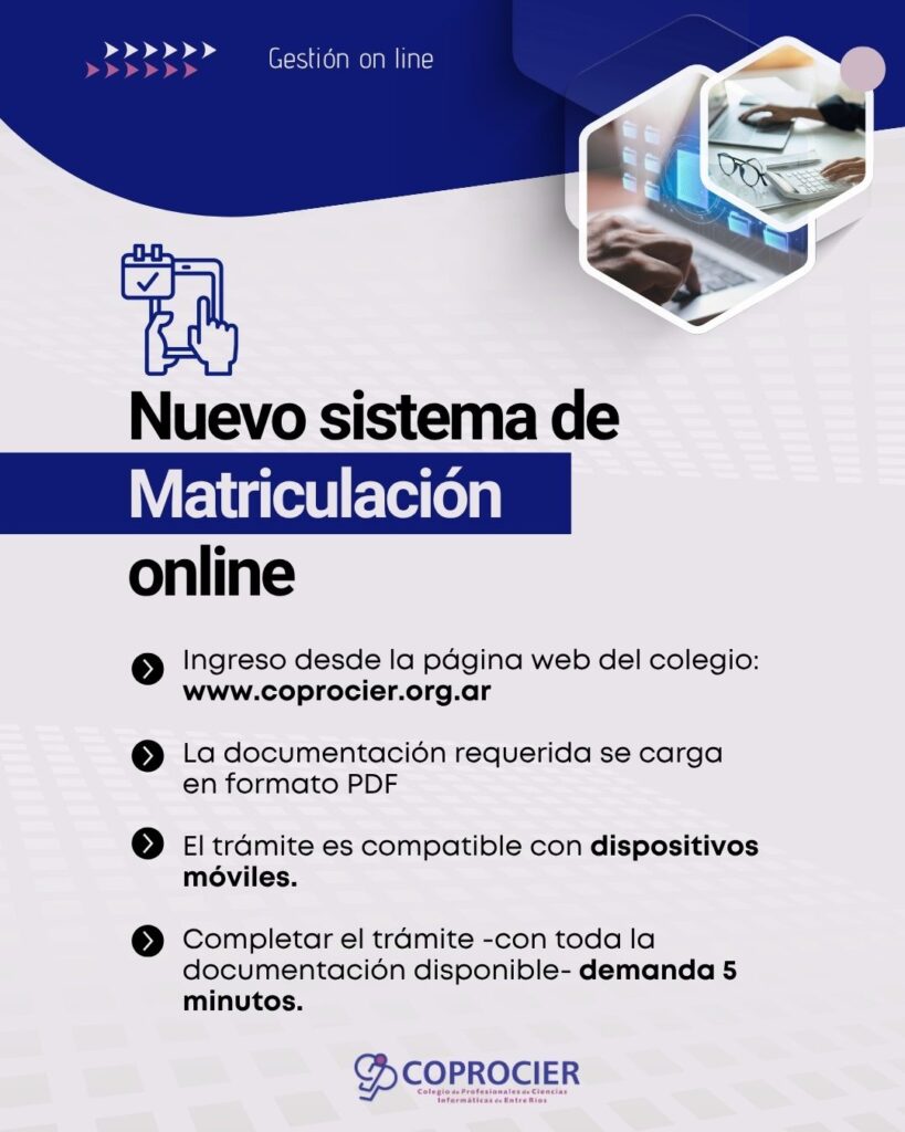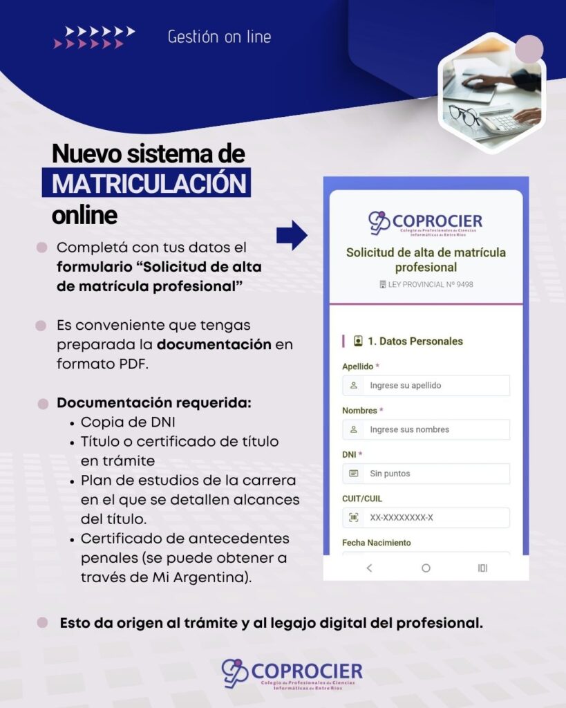 En el marco del programa de modernización institucional, COPROCIER ha actualizado la forma en que pueden darse de alta los profesionales para obtener su matrícula.